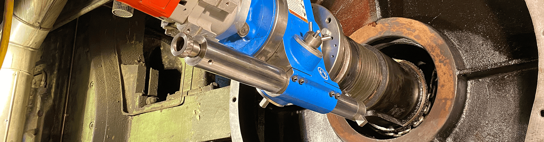 Wir bieten Ihnen mit der mobilen Bearbeitungstechnik vor Ort eine kostengünstige und zeitsparende Reparatur Ihrer Wellen und Zapfen.