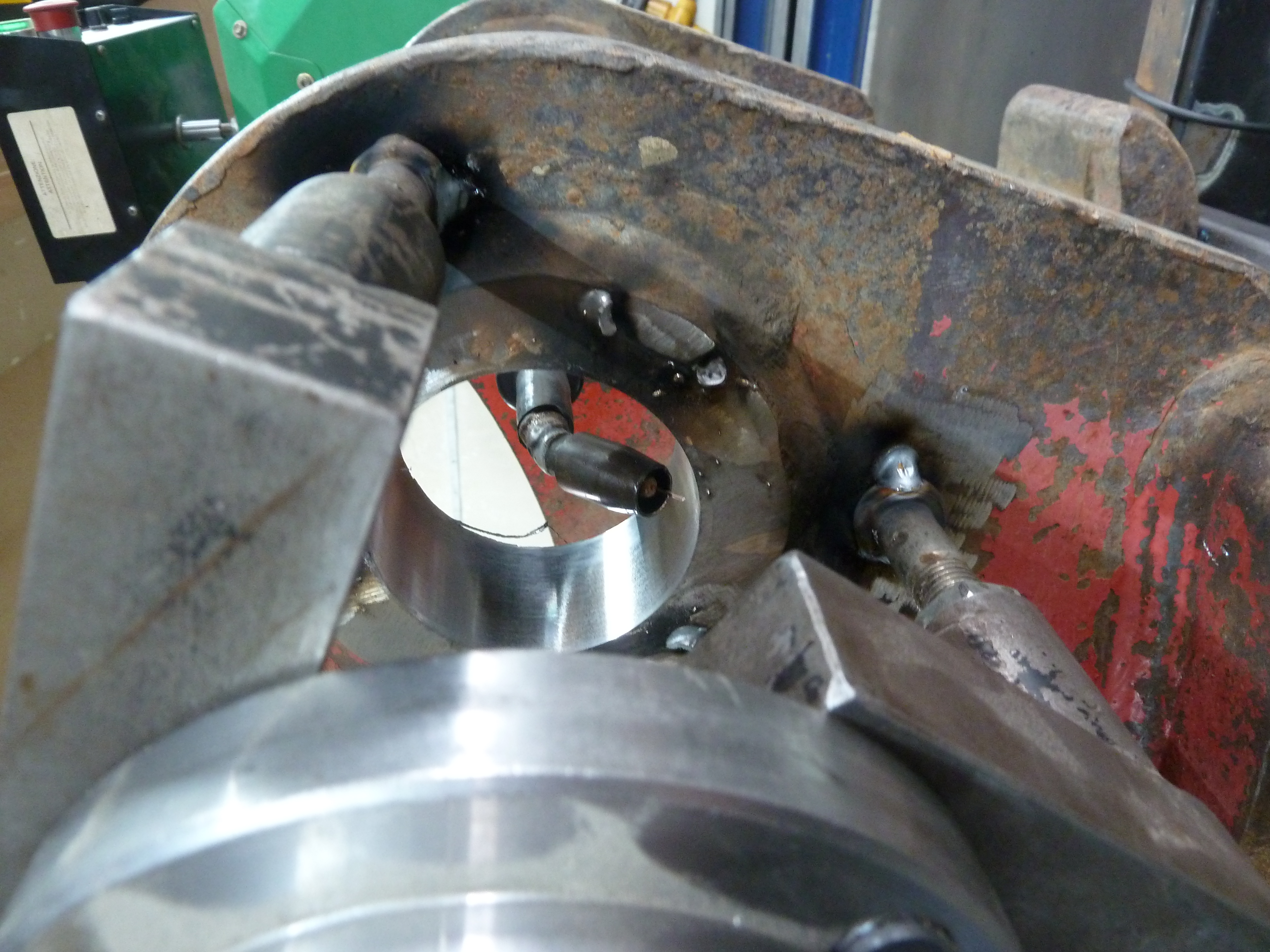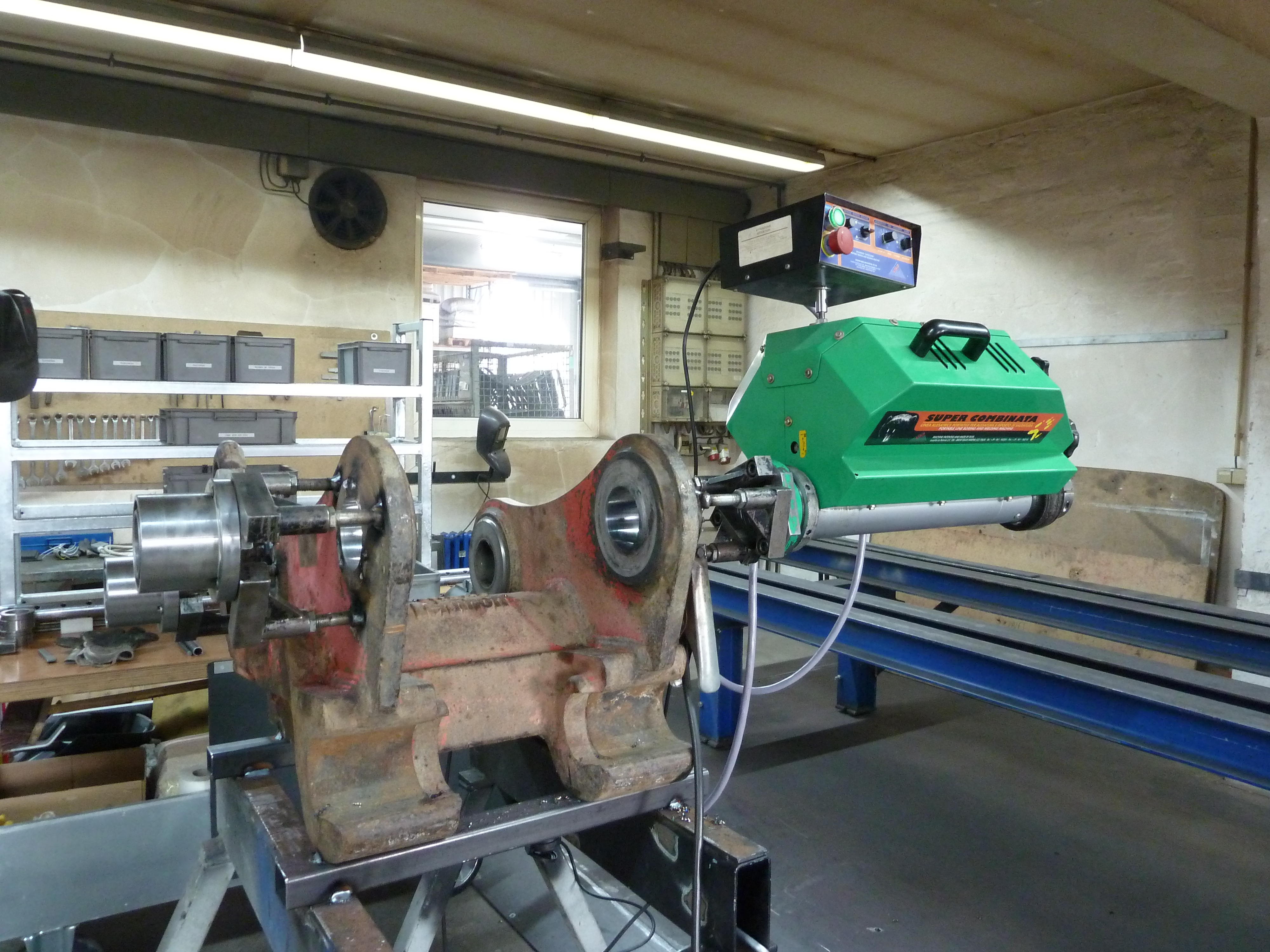 Aufarbeitung der Bohrungen Ø90 H7 am Bagger-Schnellwechsler mit mobilem Bohrwerk